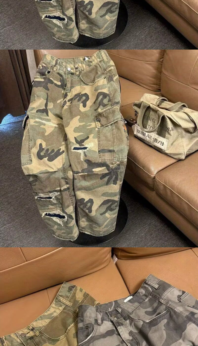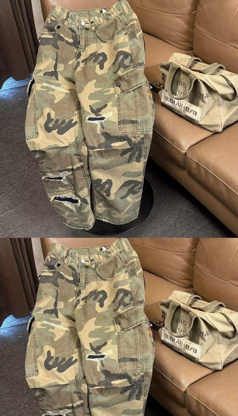 Camouflage Design: Trendy military-inspired camouflage pattern for a bold, stylish look.