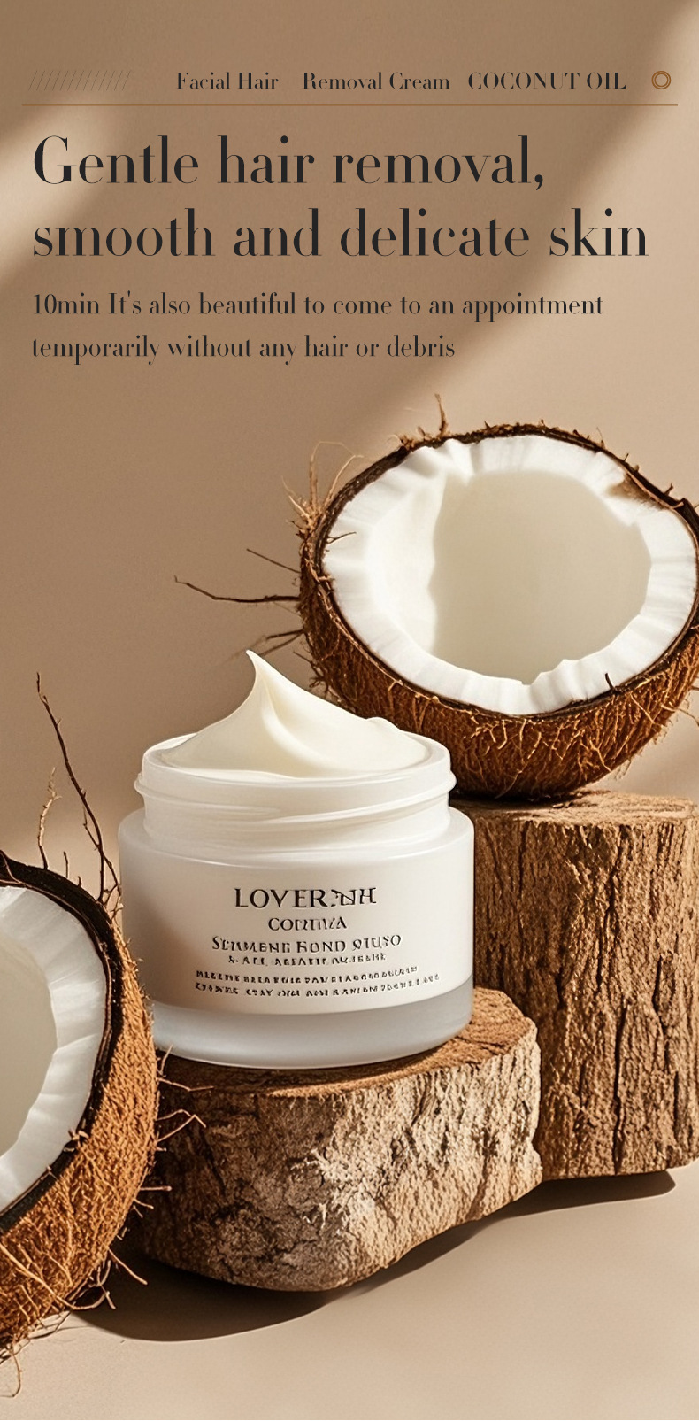 Coconut Oil Hair Removal Cream for Face and Body